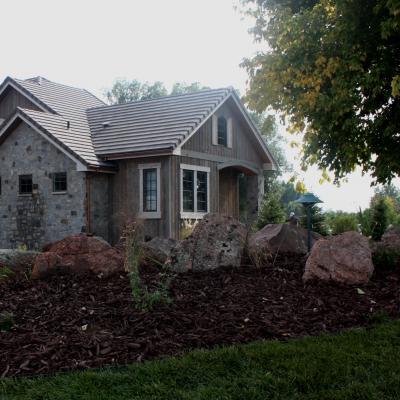 - Using color - Drawing attention to an object of earth tone color can be difficult in a landscape. All too often the colors of stucco, the browns of brick, or the amber tones of trim fade into the background in the larger picture of our landscapes. No one wants the architecture of their home to be lost in the abundant colors of their yard. We can draw attention to these structures by using mulch of a complementary color, but a differant shade. Chocolate Mulch performs this function so very well. For example, a customer requested mulch for a house which had an exterior of very dark brown stucco with a yet darker stucco trim. By itself the house was lost in a sea of green grass and foliage. With the use of Chocolate Mulch's black hue of brown, the result was a dark blanket that projected the home above and through the sea of green. The complementary combination of the browns was pleasing to the eye and very capable of competing with the other colors in the landscape. If you want to draw attention to your home in a subtle yet undeniable manner, then chocolate is for you.